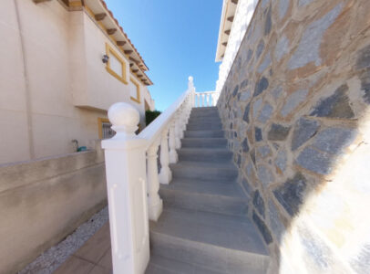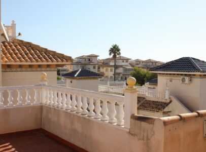 Key Features:Prime Location: Just a 2-minute walk from La Zenia Boulevard, surrounded by bustling commercial hubs, restaurants, and entertainment options. Conveniently located between the lively areas of Playa Flamenca and La Zenia, making it the perfect spot for dining, shopping, and enjoying all the attractions of the Orihuela Costa. Upon entering the villa via the external stairs, you’re greeted by a spacious south-facing terrace that connects to the living and dining area through patio doors, flooding the space with natural light. An inviting open-plan layout that provides a bright and spacious environment for relaxation and entertaining. The kitchen is well-equipped to cater to daily needs. Two generously sized double bedrooms and a modern bathroom featuring both a bath and shower. Upper Level: Accessible via external stairs, the upper level boasts a private solarium, ideal for sunbathing, relaxation, or hosting social gatherings. An additional bedroom and bathroom on this floor provide extra comfort and privacy for guests.