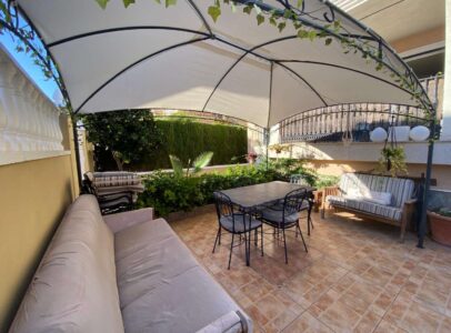 The property features a private entrance and a spacious sunny terrace, perfect for relaxing or entertaining family and friends. A covered porch leads to a spacious and bright living area, combining an open-plan living and dining area, equipped with air conditioning for optimal comfort all year round. The separate, fully equipped kitchen includes all the necessary appliances for convenient and pleasant daily use.