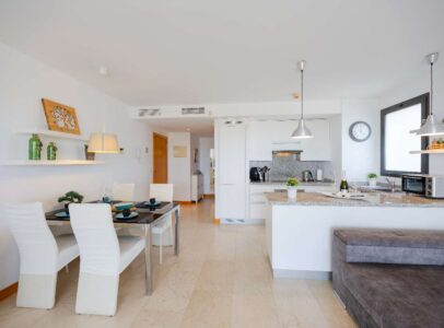 The true highlight of this property is its large 21 m² terrace offering completely unobstructed sea views. Thanks to its elevated position and south-facing orientation, the apartment benefits from optimal natural light, excellent privacy, and panoramic vistas—a rare privilege in this area.