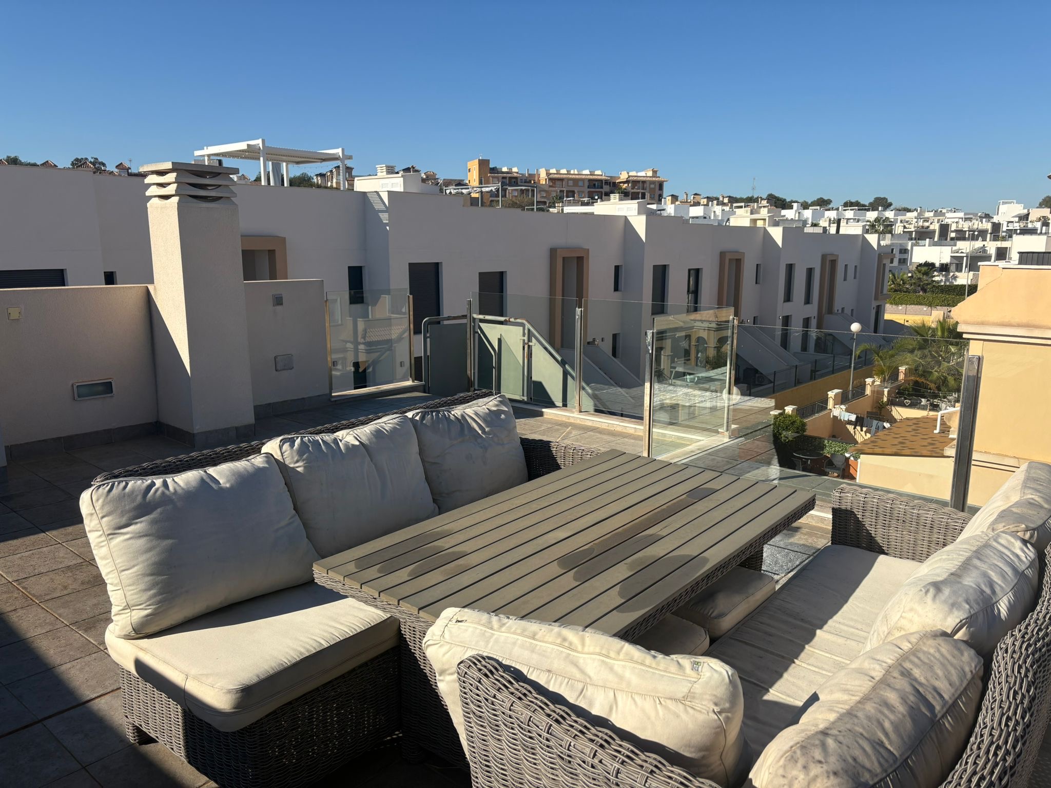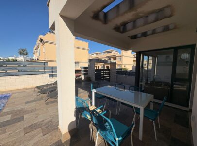 Magnificent villa located in the prestigious area of PAU 26, Orihuela Costa. This property is designed for those seeking comfort and quality of life, offering a cozy environment to enjoy the sunny Mediterranean climate thanks to its south-facing orientation. The house features three spacious double bedrooms that guarantee ideal rest, as well as three equipped bathrooms for added convenience. With a usable area of 165 m² and an extensive private plot of 227 m², this villa is perfect for both year-round living and vacationing.