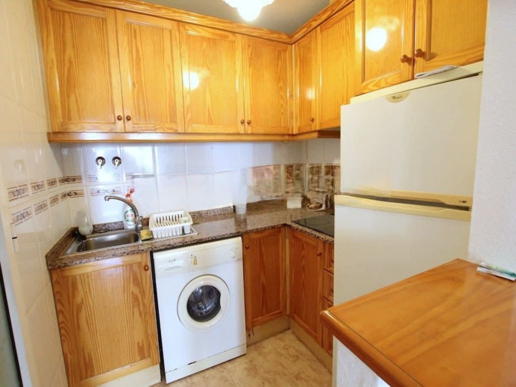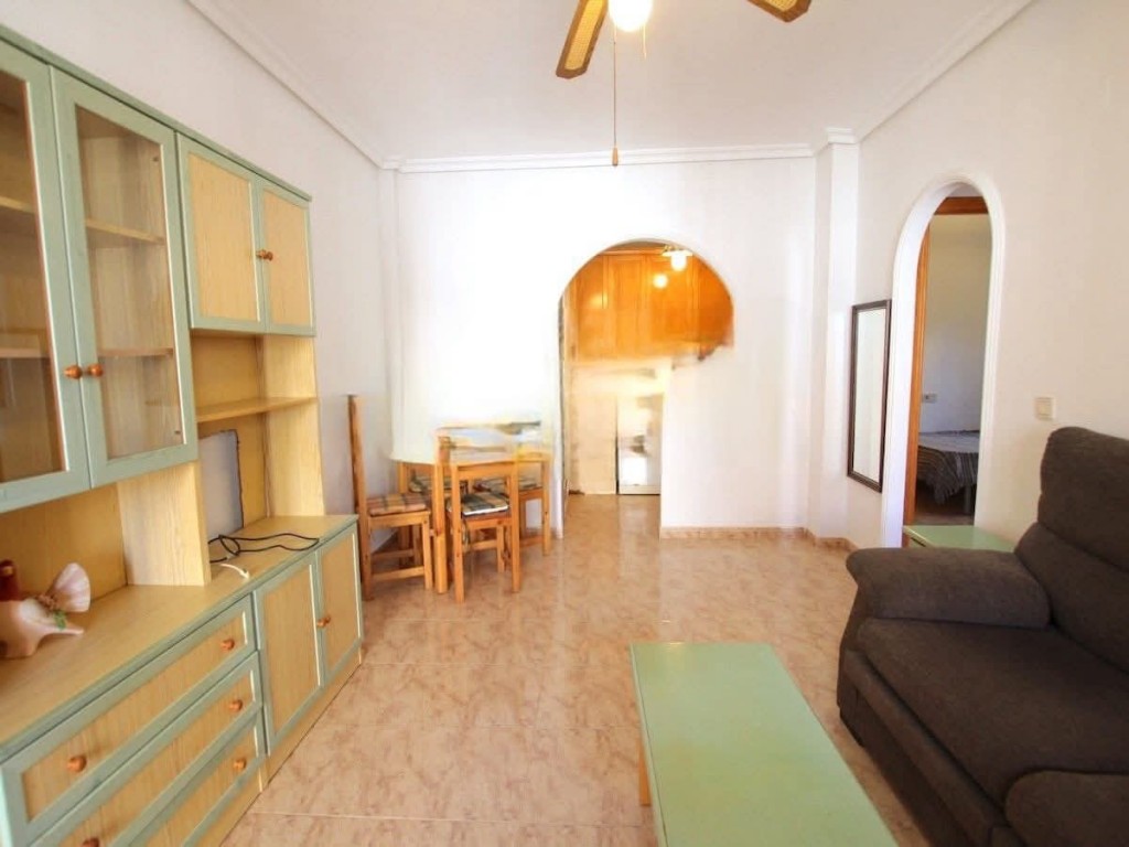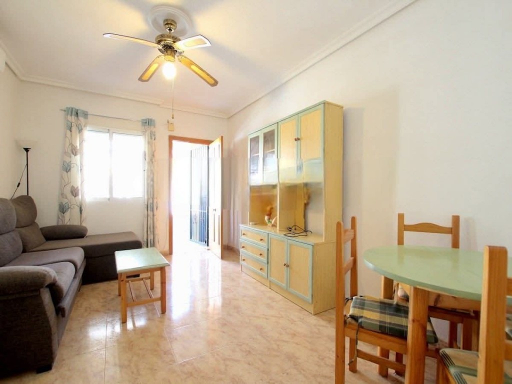 This charming bungalow apartment, priced at €135,000, offers two bedrooms, one bathroom, a private roof solarium, patio garden, and its own driveway, along with access to a well-maintained community pool and gardens. Located in the peaceful area of Los Altos, the property comes fully furnished and equipped, featuring air conditioning, ceiling fans, a spacious living room, an open-plan kitchen with appliances, a glazed breakfast terrace, and fitted wardrobes in the double bedroom. Its excellent location provides walking-distance access to supermarkets, shops, bars, restaurants, and parks, as well as nearby bus services that connect directly to Torrevieja town centre and the marina. Just a short drive from the beaches of Punta Prima, La Zenia Boulevard, Villamartin Plaza, and local golf courses, this home is ideal as a holiday property or rental investment. Community fee: €260 per year. Suma: €160 per year.