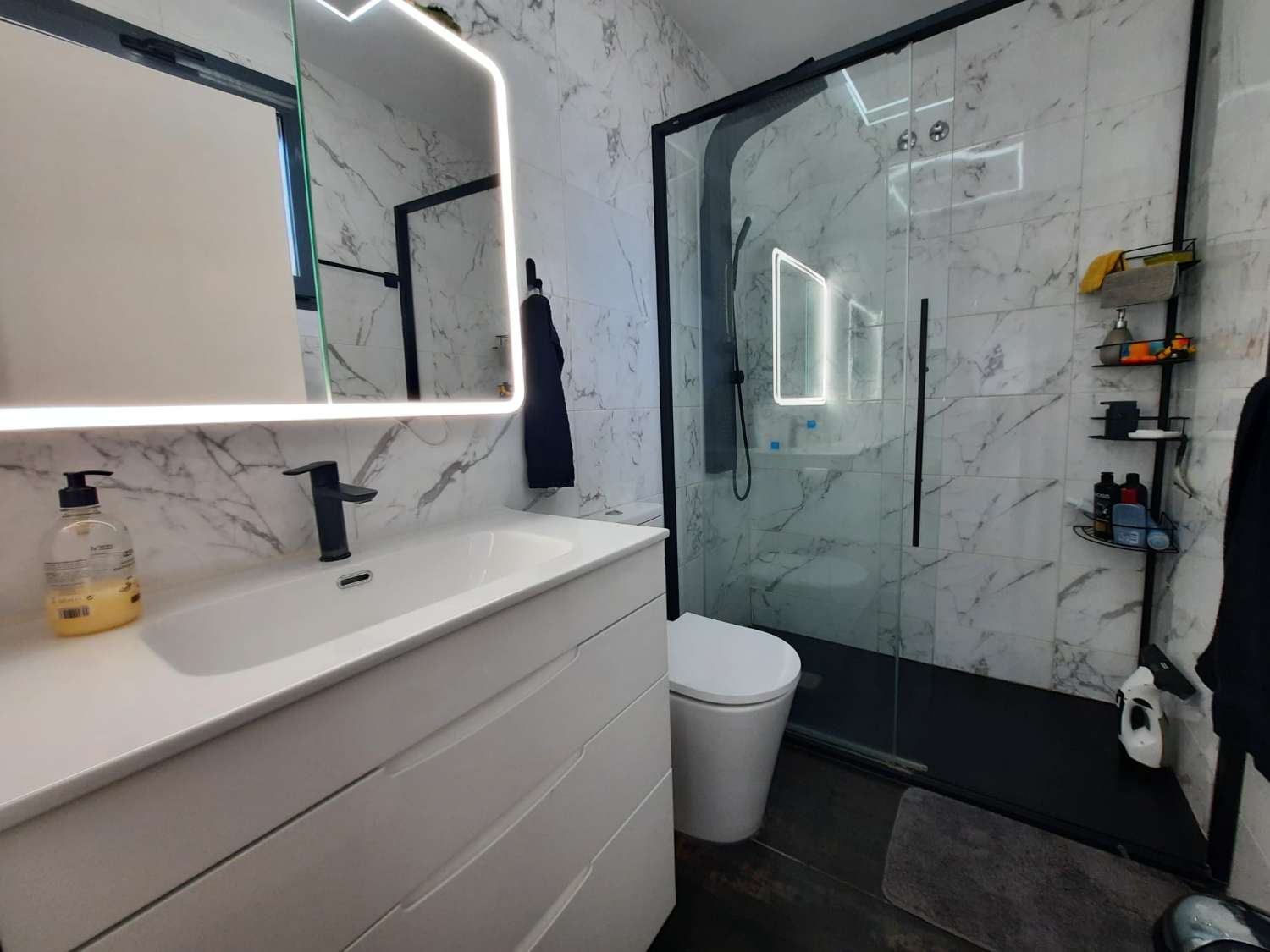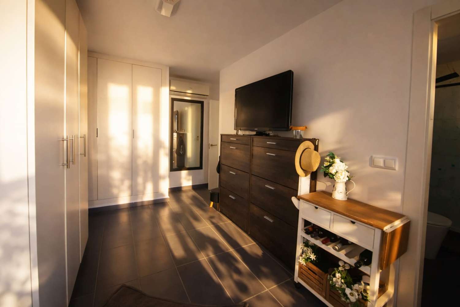 Bright living area with pool views, several sunny terraces, fully renovated bathrooms and private parking plus additional storage.