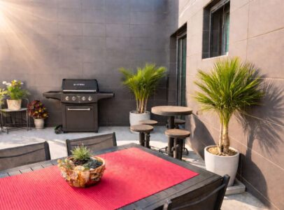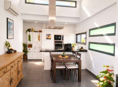 The highlight of the property is the unique rooftop “beachhouse” with bioclimatic pergola and glass curtains – usable all year round, open in summer and cozy in winter.