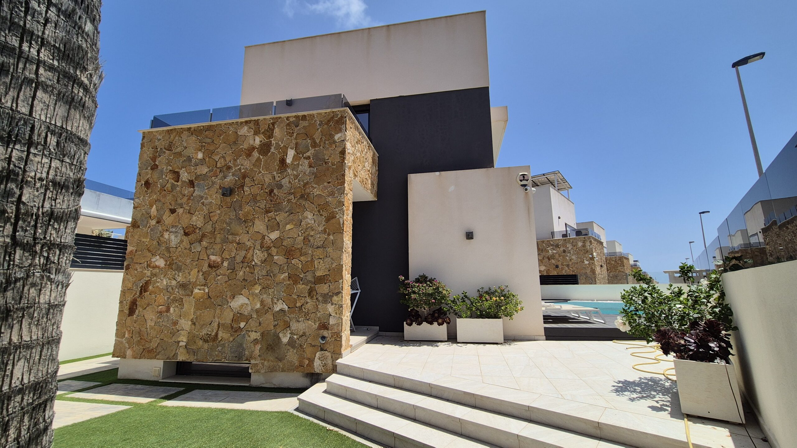 Modern villa with private swimming pool and off road parking.