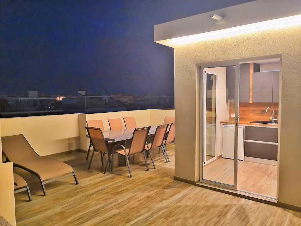 Private roof terrace, outdoor kitchen, sauna next to the house 150m swimming pool. Restaurants, bars and grocery store ~300m