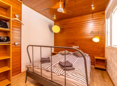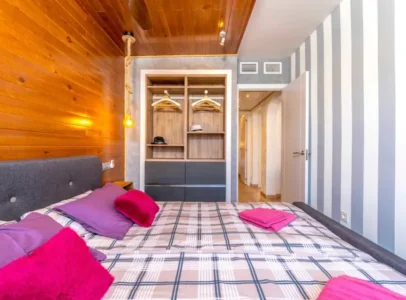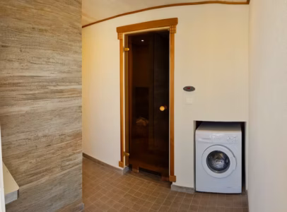 This apartment has everything you need. TV and free WI-Fi, there is a dishwasher and washing machine. 4 rooms, with a master bedroom with a king-size bed, a children’s room with a three-part bunk bed where you can sleep adults as well. One small room with a TV and a kitchen as well. You feel very comfortable there. There is also a balcony on the first floor where you can eat and drink coffee with a beautiful sunrise. On the roof terrace there is a large area with a grill and a large table where you can feel relaxed with friends and family. There is also a sauna, an outdoor kitchen, a toilet and a shower room – everything is at hand.