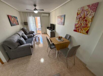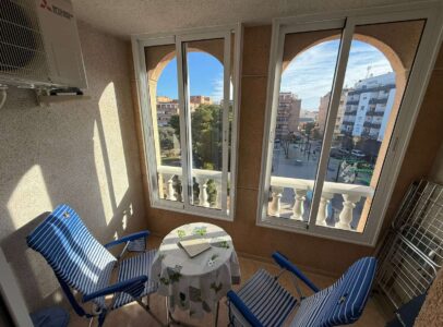 We are proud to present this well-conditioned 2-bed, 1-bath apartment overlooking one of Central Torrevieja’s greenest spaces. Situated on the 3rd floor of a well-maintained building with a lift, this property offers the perfect balance of city convenience and scenic tranquility.