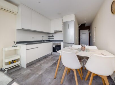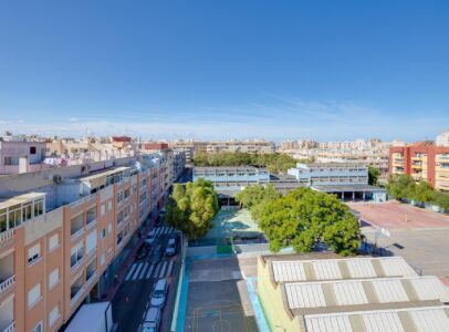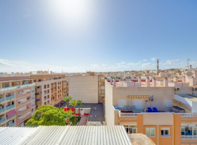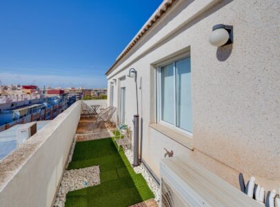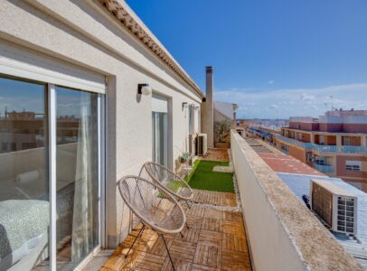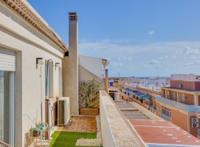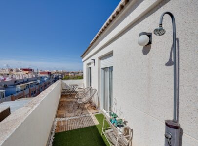 Discover this fantastic duplex penthouse located right in the center of Torrevieja, only a short stroll away (just 10 minutes) from the beautiful Playa del Cura!  This unique property features an exceptional design and layout that you’ll absolutely love. The lower floor includes a modern bathroom, a fully equipped open kitchen with dining area, and a lovely terrace perfect for soaking up afternoon sun. Upstairs boasts three spacious bedrooms, another chic bathroom, and an inviting living room leading to another sunny terrace where you can enjoy daylight all day long . Additionally, there is a laundry area with independent access to storage on the terrace . With all amenities within walking distance due to its prime location in central Torrevieja ; this property is ideal for both year-round living or vibrant summer vacations —a highly sought-after neighborhood awaits your arrival!~