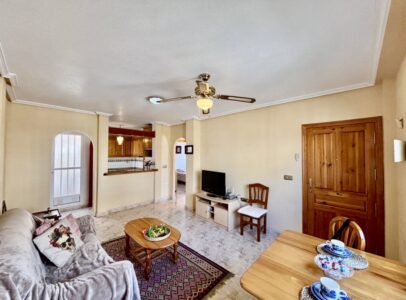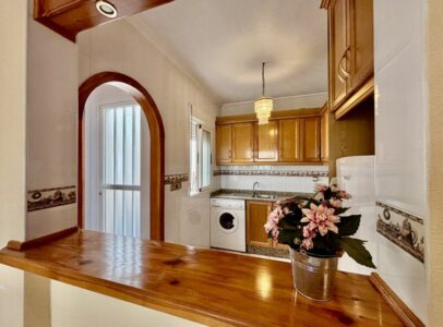 Great One Level Quad fully furnished property in a peaceful location. This lovely bungalow has a patio garden and breakfast terrace to enjoy as well as a well maintained community pool and gardens. Just a 10 minutes walk to local shops, bars and restruants. Less than a 5 minutes drive to the beautiful cove beaches of Cabo Roig or to the buzzy strip, full of nightlife. Only a few minutes drive to the golf course.