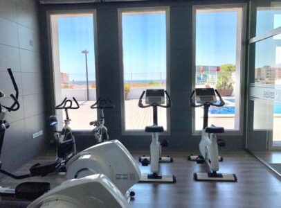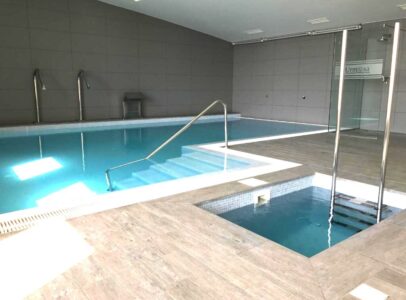 The residential complex offers excellent communal facilities, including an outdoor swimming pool surrounded by green areas, an indoor heated pool for year-round enjoyment, a fully equipped gym, a sauna, and a wellness area for relaxation.