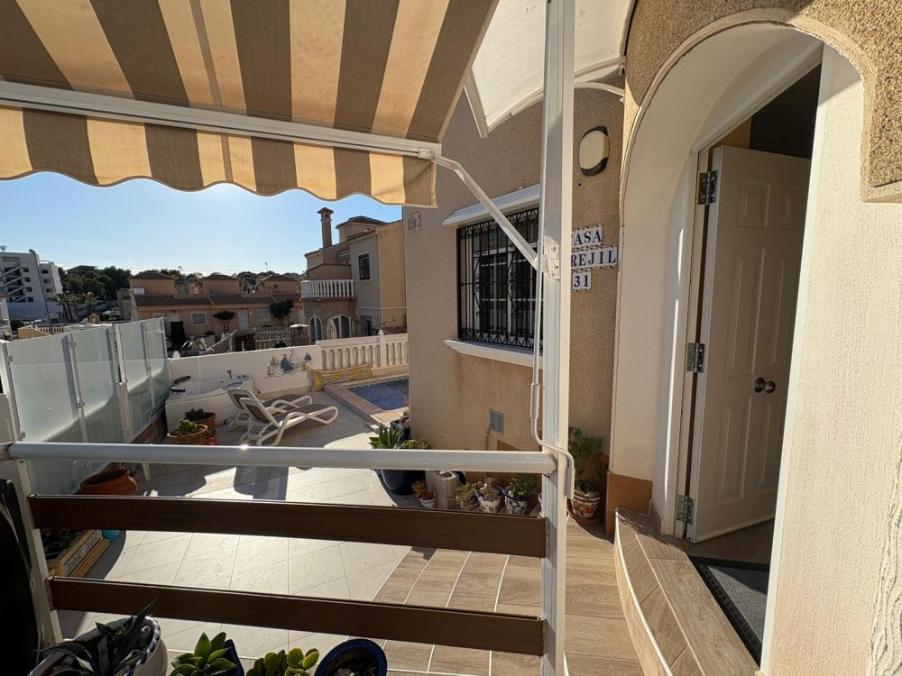 This property offers an excellent combination of space, comfort, and location. Situated in a quiet residential area of Villamartín, it features three bedrooms, two bathrooms, and an additional bedroom on the solarium equipped with a bunk bed. The home includes an open-plan kitchen, a spacious living-dining area, a front terrace with awning, a jacuzzi in the garden, and a private solarium—perfect for enjoying the Mediterranean climate.