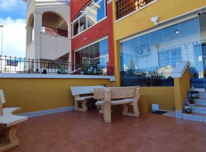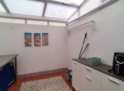 The property includes a charming front garden as well as a terrace featuring retractable glass curtains, allowing residents to enjoy the Spanish sunshine or retain warmth during cooler seasons.