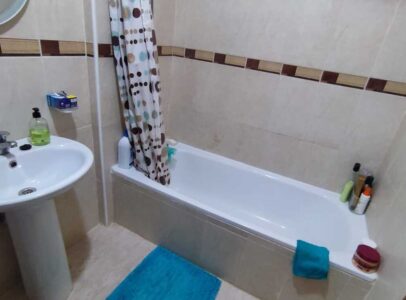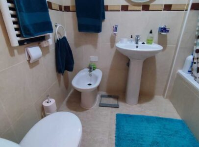 The accommodation comprises two double bedrooms and two bathrooms (one with shower, the other with bathtub), ensuring comfort and convenience.