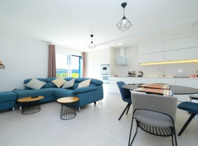 Situated within a secure and impeccably maintained gated community, the property offers bright, stylish, and comfortable living throughout. The spacious lounge and dining area opens directly onto a sunny south-facing terrace — an ideal setting for relaxing or enjoying al fresco dining year-round. The contemporary fully fitted kitchen provides generous storage and ample workspace.