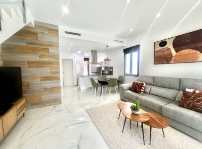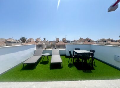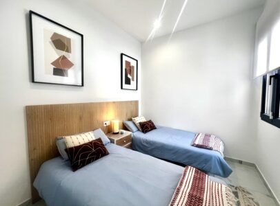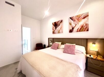 Upstairs, you’ll find two spacious bedrooms, each with its own en-suite bathroom, and direct access to a spectacular solarium with open views of Torrevieja’s famous pink salt lake—one of the area’s most iconic natural landmarks.