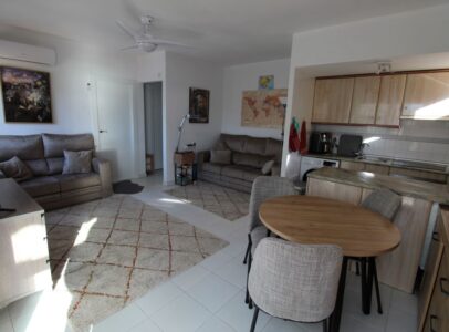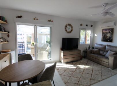 The apartment features a spacious and bright living-dining room, adjacent to a fully equipped open-plan kitchen, ideal for those seeking comfort and practicality. It also includes air conditioning and a ceiling fan, ensuring maximum comfort year-round. Brand new top quality windows, also new appliances