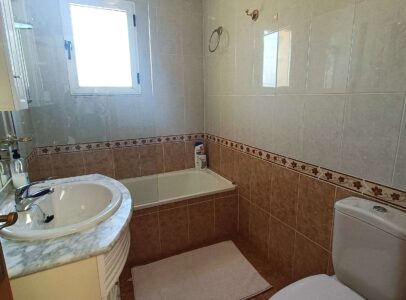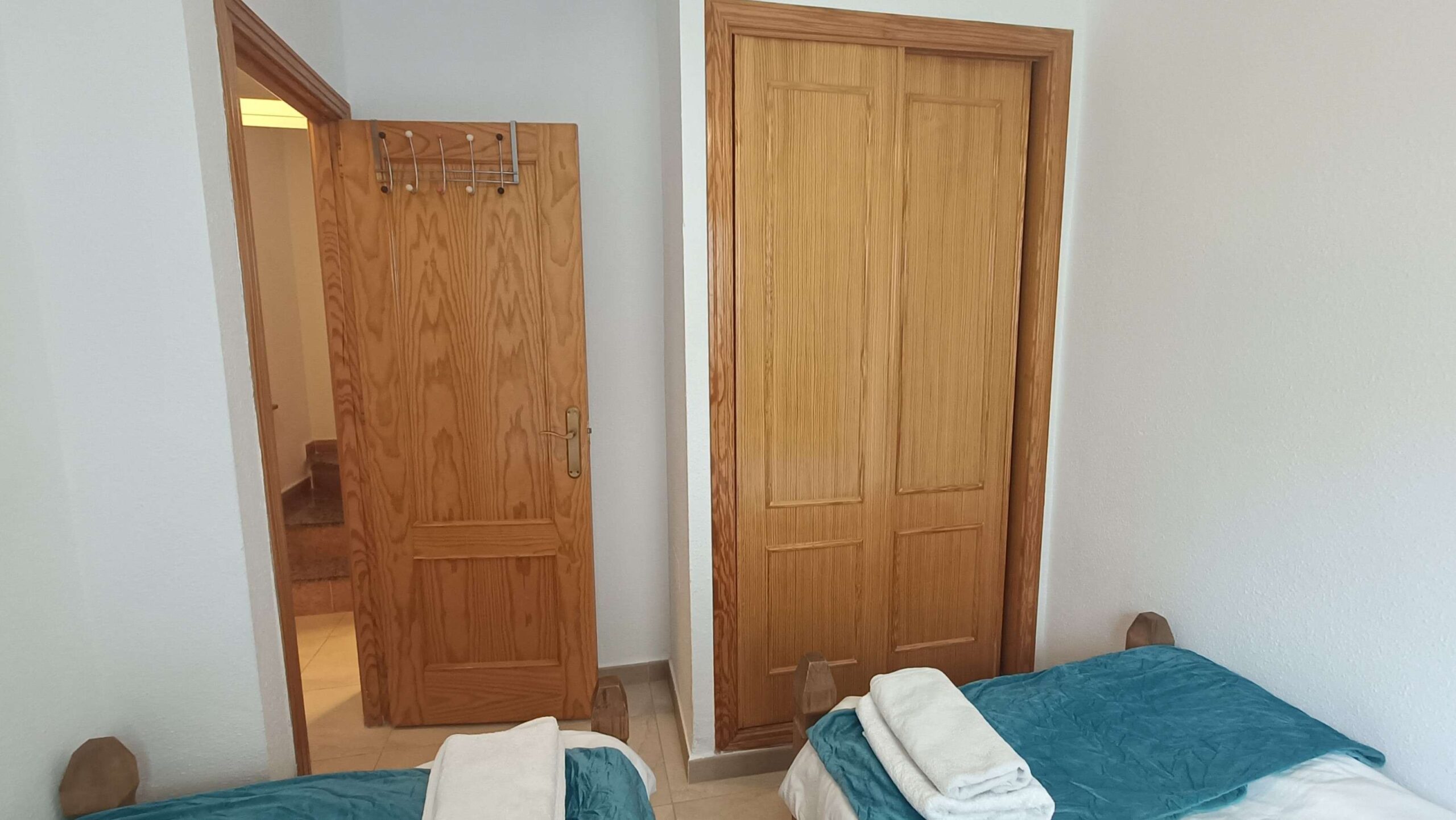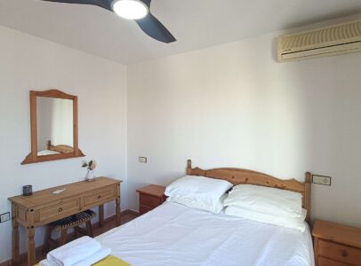 Upstairs, the property offers a second bedroom, an additional family bathroom, and a spacious master bedroom with direct access to a fantastic private terrace, ideal for unwinding and enjoying the Mediterranean climate. All three bedrooms benefit from built-in wardrobes, ensuring ample storage throughout the home.