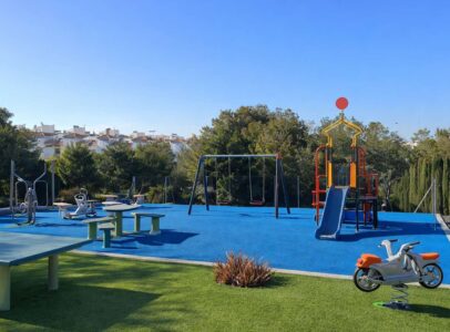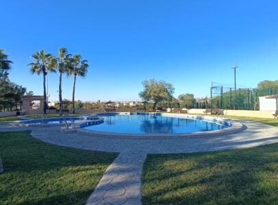 The community itself boasts excellent facilities, including two large communal swimming pools surrounded by well-kept garden areas, a tennis/paddle court, two bowls lanes, and a children’s play area. Access to these amenities is exclusively available to residents via secure key card entry, ensuring both privacy and security.