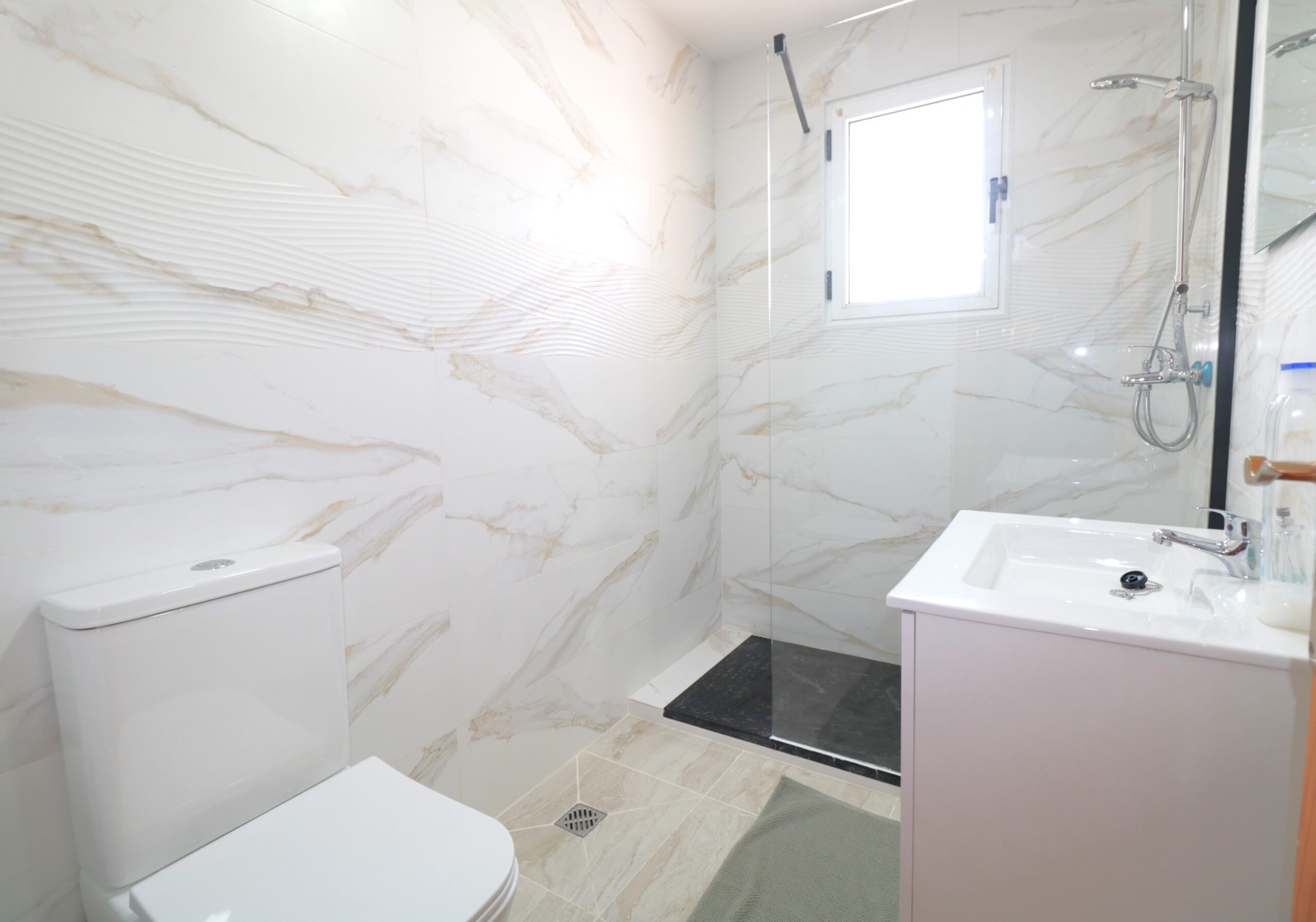 Quad located in the Carrefour area of Torrevieja. This renovated property boasts 85 m² of living space. Enjoy the comfort of its three double bedrooms and two full bathrooms. The northeast orientation provides abundant natural light to all areas of the home, complemented by a spacious garden perfect for enjoying the outdoors, where you can also park your car.