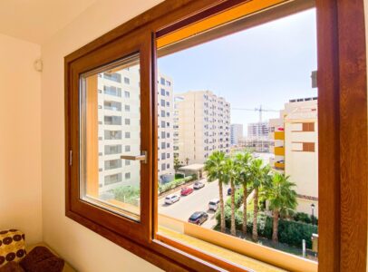 For sale apartment with sea views in the gated urbanization of Parque Recoleta in Punta Prime. Cozy,sunny apartment have 2 bedrooms and 1 bathroom, a lounge-dining room with access to a terrace with nice views to the green areas and a kitchen. The terrace overlooks the park and the sea. The apartment have central air conditioning for cold and heat and heated floor in the bathroom. Apartment is sold with space in the underground garage. Closed area with pool and 24 hour security. The urbanization Parque Recoleta is located in the south of Costa Blanca just a few steps from the sea and surrounded by infrastructure.