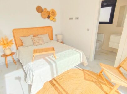 A small development of only 5 villas, all on one level, with a layout featuring 3 bedrooms and 2 bathrooms, an open-plan living/dining room and kitchen, fully equipped with a central island and views of the private pool, on independent plots starting at 300 m². There is also a large solarium to enjoy the sun and the beautiful views all year round.