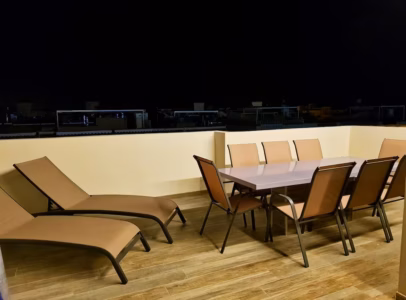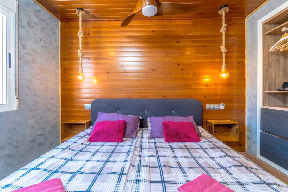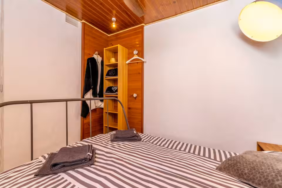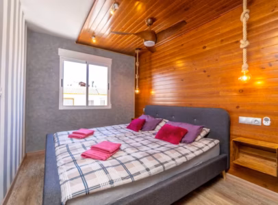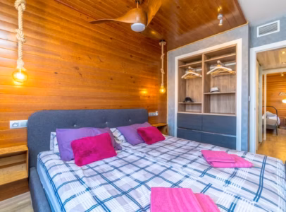 This apartment has everything you need. TV and free WI-Fi, there is a dishwasher and washing machine. 4 rooms, with a master bedroom with a king-size bed, a children’s room with a three-part bunk bed where you can sleep adults as well. One small room with a TV and a kitchen as well. You feel very comfortable there. There is also a balcony on the first floor where you can eat and drink coffee with a beautiful sunrise. On the roof terrace there is a large area with a grill and a large table where you can feel relaxed with friends and family. There is also a sauna, an outdoor kitchen, a toilet and a shower room – everything is at hand.