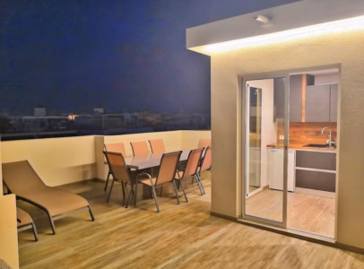 Private roof terrace, outdoor kitchen, sauna next to the house 150m swimming pool. Restaurants, bars and grocery store ~300m
