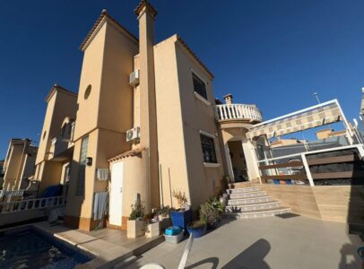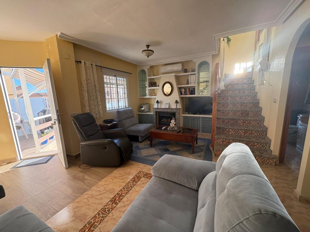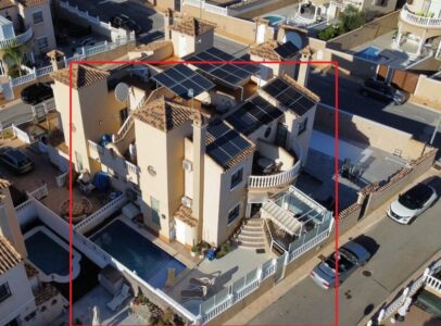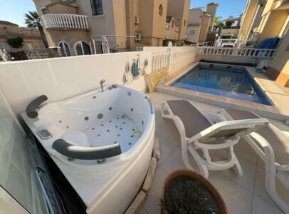 This property offers an excellent combination of space, comfort, and location. Situated in a quiet residential area of Villamartín, it features three bedrooms, two bathrooms, and an additional bedroom on the solarium equipped with a bunk bed. The home includes an open-plan kitchen, a spacious living-dining area, a front terrace with awning, a jacuzzi in the garden, and a private solarium—perfect for enjoying the Mediterranean climate.