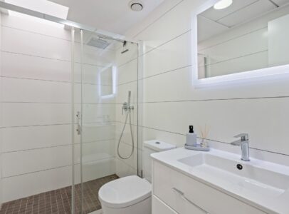 The bungalow offers two bedrooms and two bathrooms and features a practical layout with an open living area and kitchen that creates a pleasant sense of space and comfort. From the living area you have access to the terrace and the garden at the front of the property, a lovely place to relax and enjoy the Mediterranean climate.