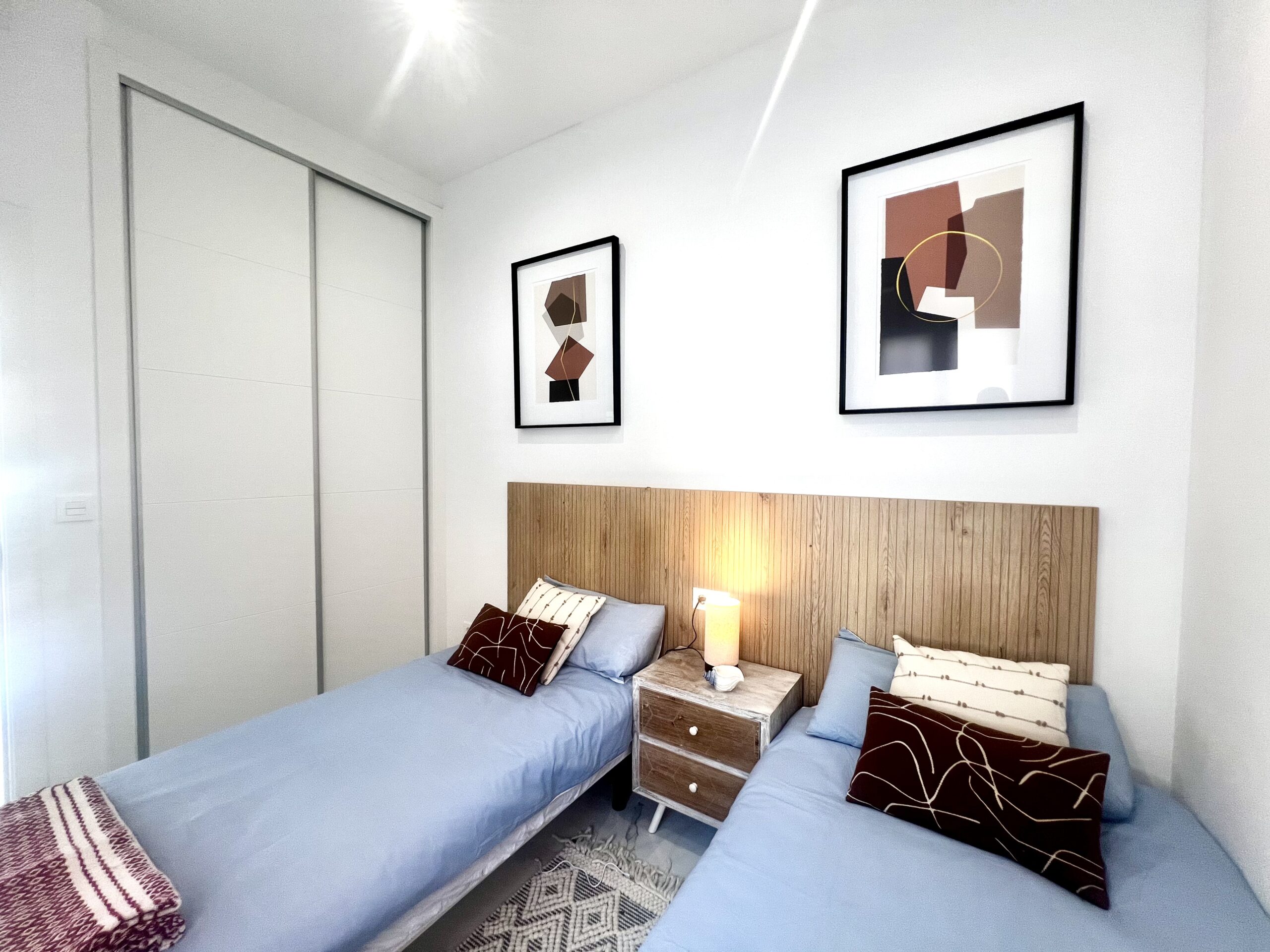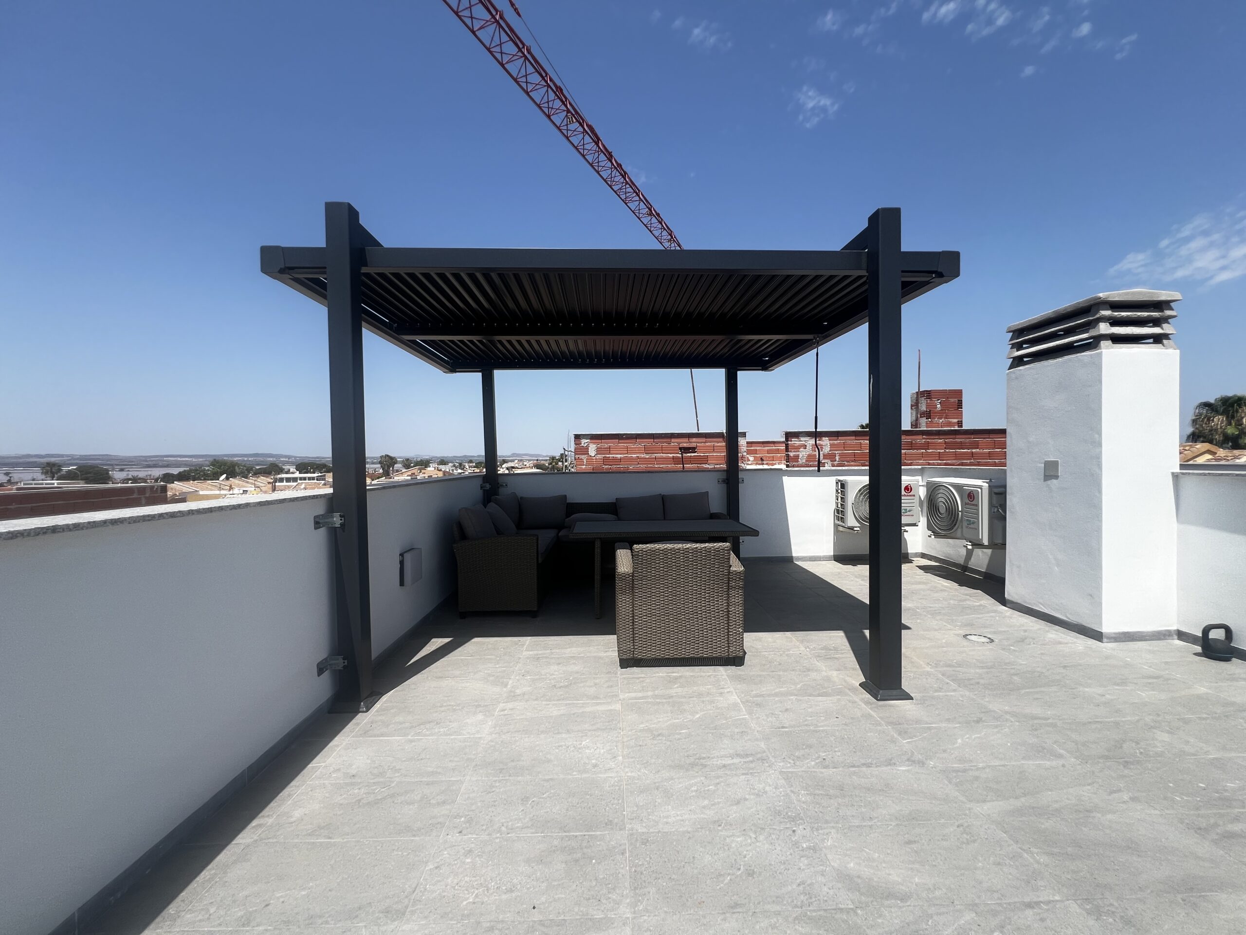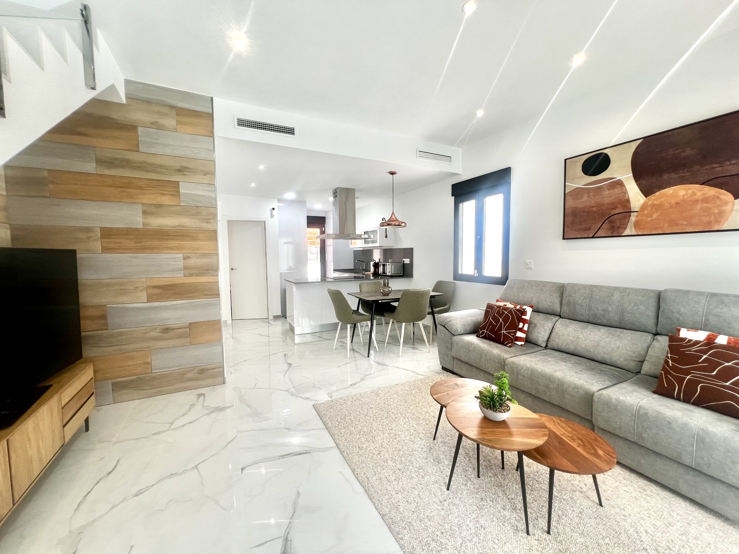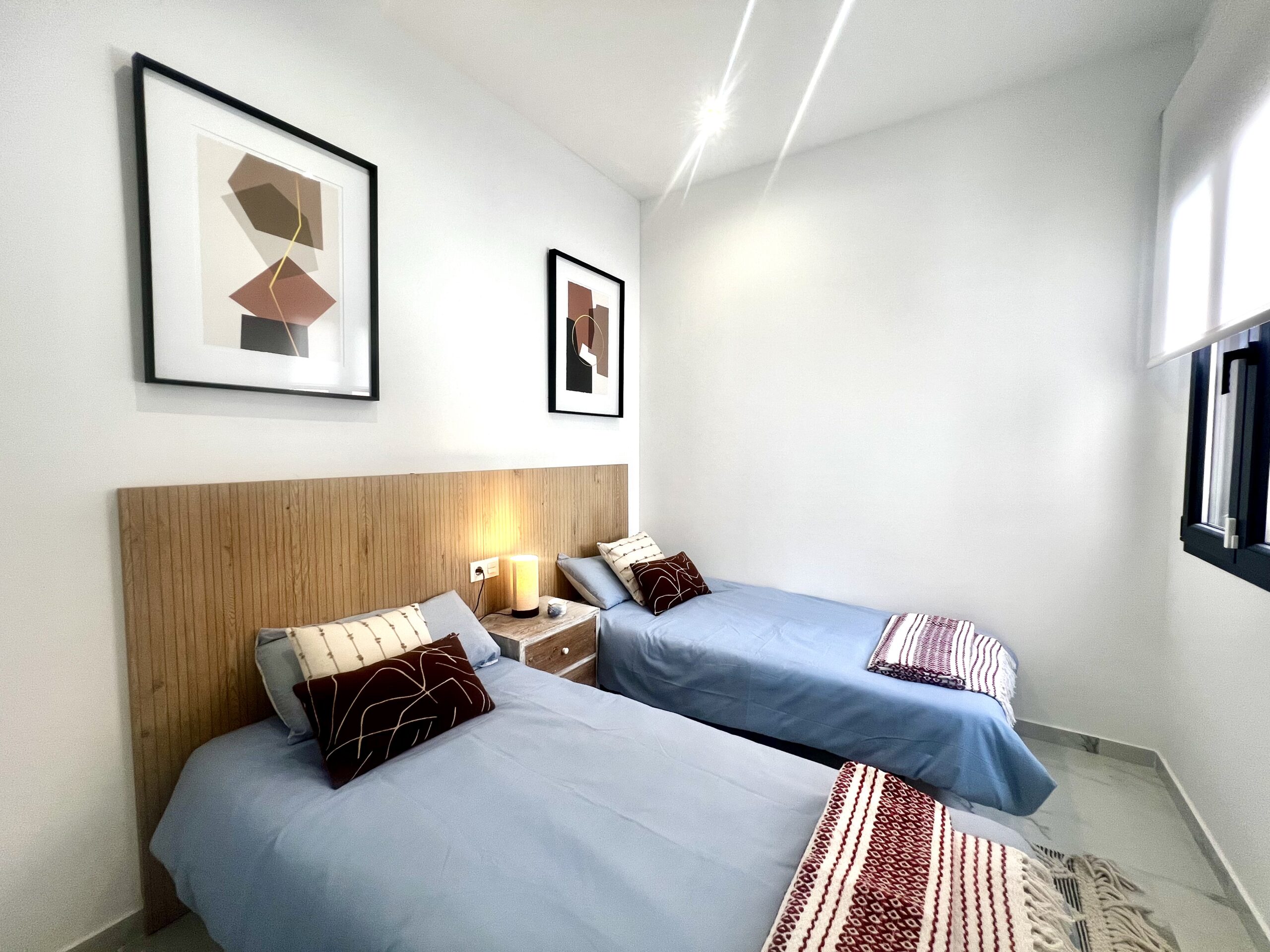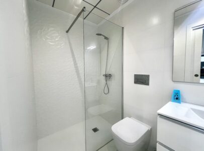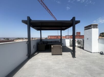 Upstairs, you’ll find two spacious bedrooms, each with its own en-suite bathroom, and direct access to a spectacular solarium with open views of Torrevieja’s famous pink salt lake—one of the area’s most iconic natural landmarks.