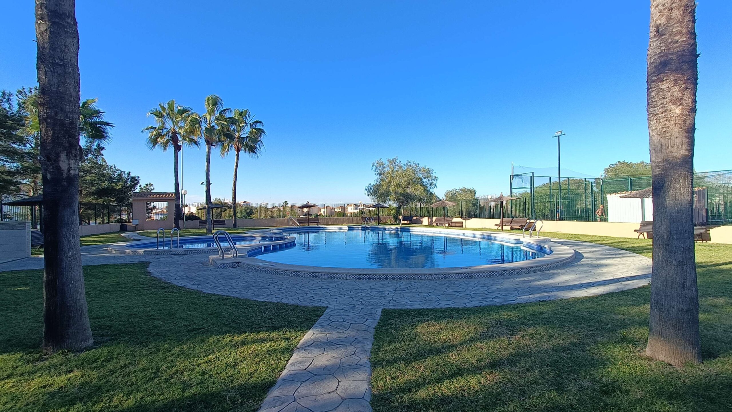 The community itself boasts excellent facilities, including two large communal swimming pools surrounded by well-kept garden areas, a tennis/paddle court, two bowls lanes, and a children’s play area. Access to these amenities is exclusively available to residents via secure key card entry, ensuring both privacy and security.