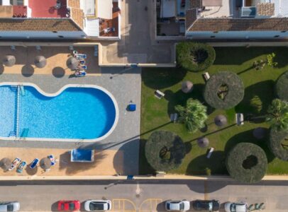 The plot measures approximately 44 m² and includes a private garden—perfect for relaxing or enjoying family time outdoors. You can also cool off in the communal swimming pool located within a secure urbanization surrounded by beautiful trees and children’s play areas designed especially for the little ones.